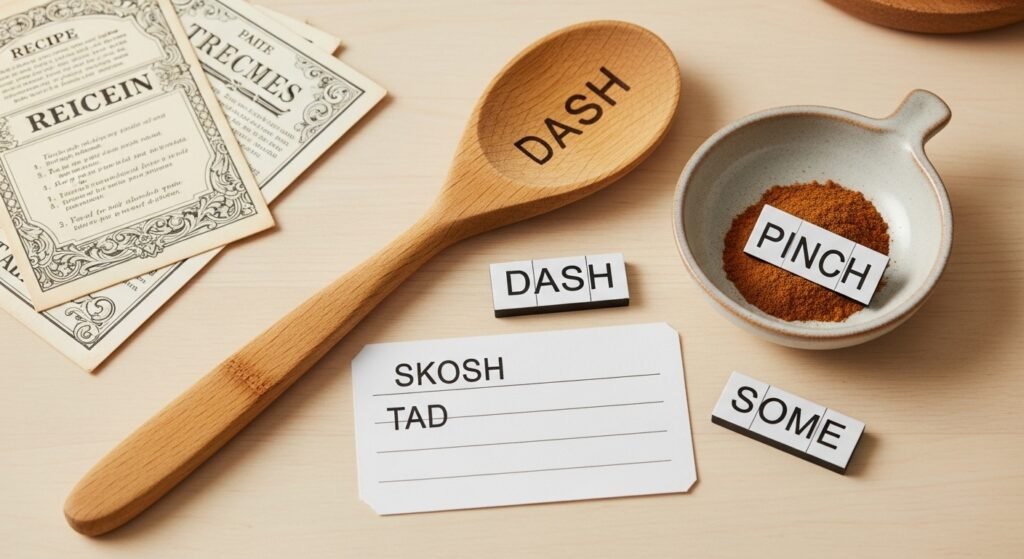 One frequent answer for the ambiguous recipe amount crossword clue is SKOSH. This five-letter word means a small or vague amount. It came from military talk long ago and now shows up in cooking or casual speech. When you see a five-letter slot and the clue mentions recipes, SKOSH often fits perfectly.