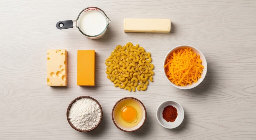 These chick fil a mac and cheese recipe ingredients create the creamy sauce that people remember. For example, the American cheese acts like a helper that makes everything blend without lumps. Fresh cheddar adds the sharp bite that balances the mild noodles. Because you use real cheeses, the dish tastes fresh and comforting.