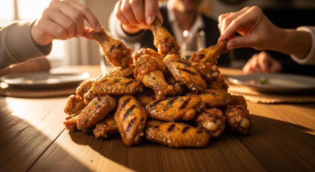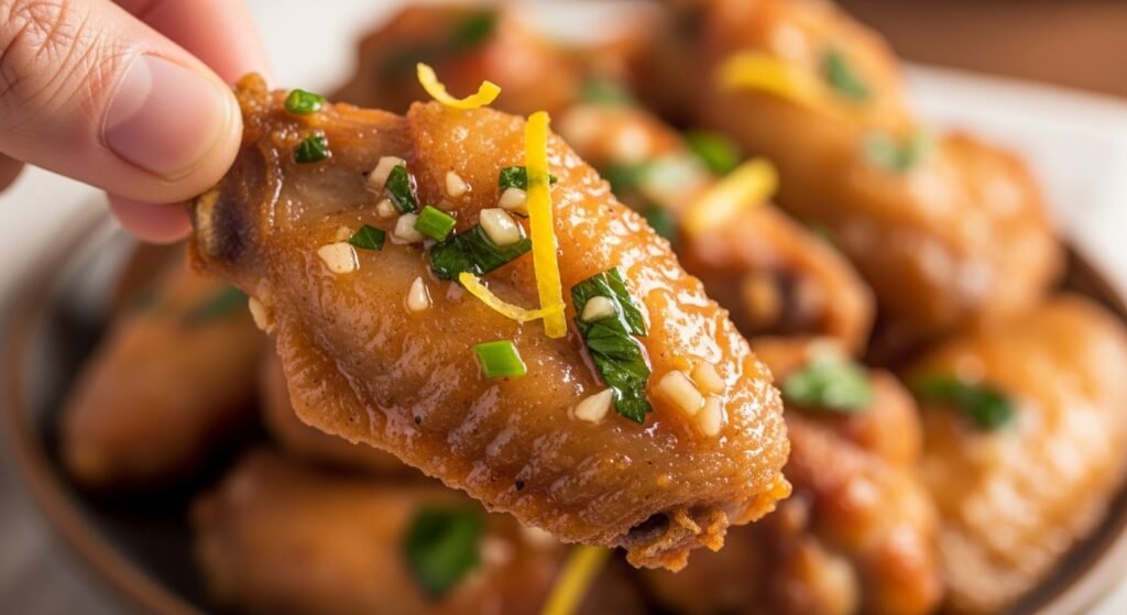 When making the sauce, do not overheat the butter after adding the herbs. High heat can make the garlic bitter and the fresh herbs lose their bright color. Warm everything gently instead. Also, taste the sauce before tossing the wings. You can adjust the lemon or spices to match your family’s preference.